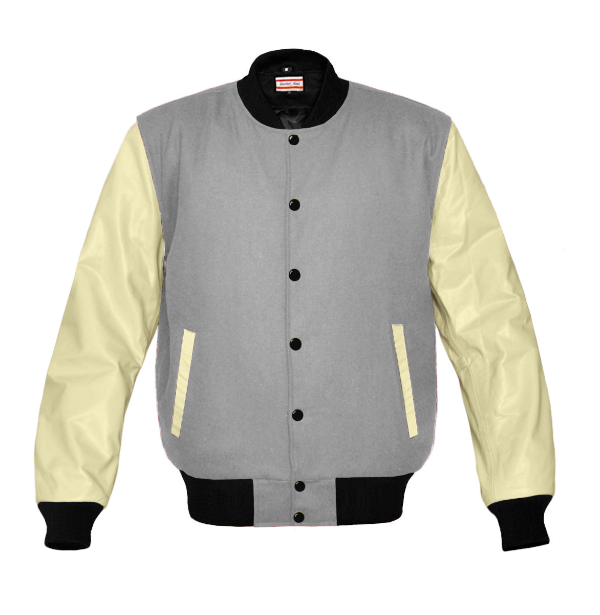 Original American Varsity Real Cream Leather Letterman College Baseball Men Wool Jackets #CRSL-BB-Bband